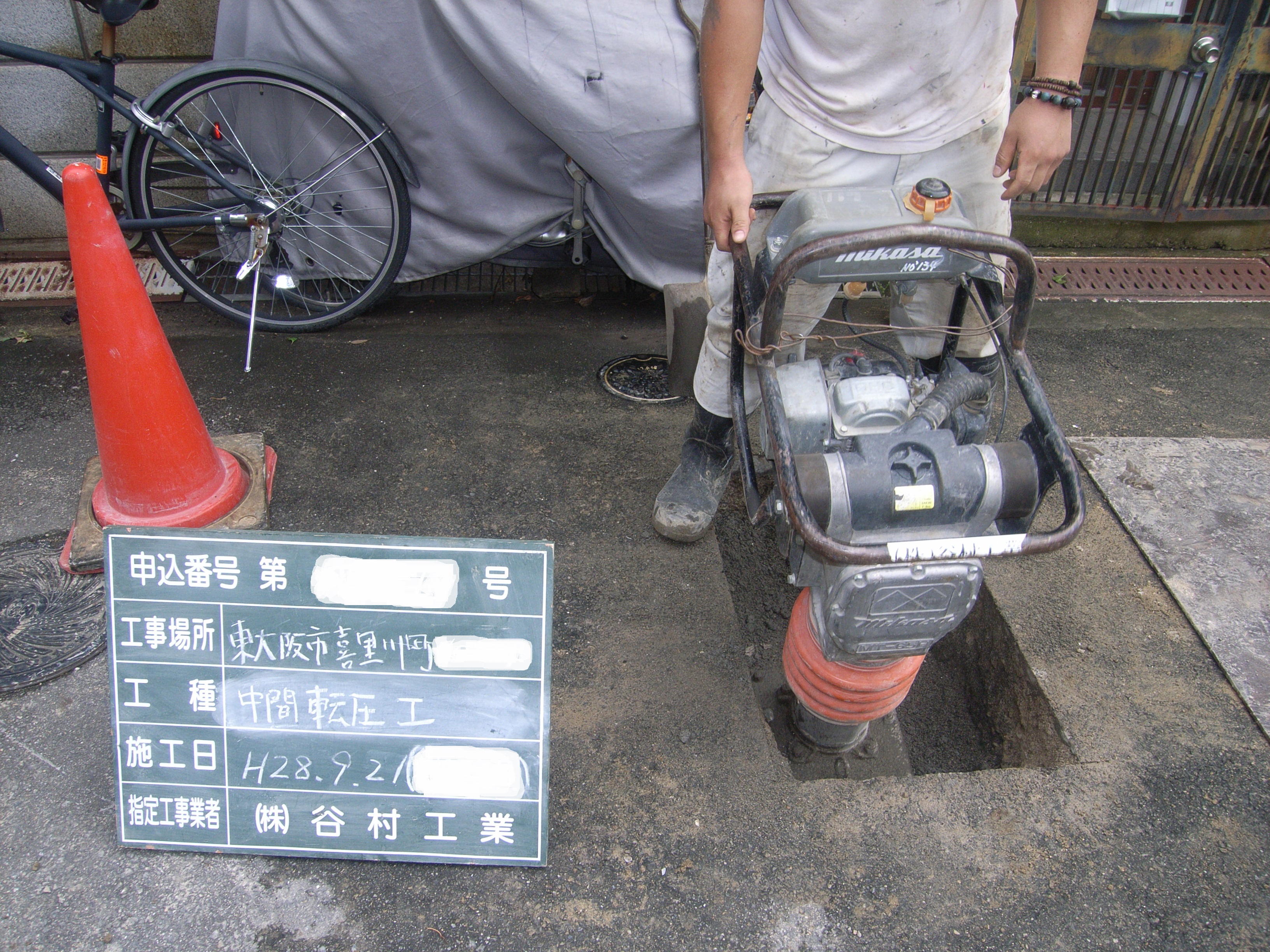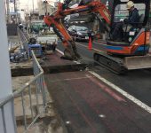 ワンルーム用にφ40の引きこみとφ20の撤去を行いました。天気はあいにくの雨でしたがテントを張って決行。大手ハウスメーカー様の物件で、有名大学の目の前です。道路が石畳になっているためまずはそれを撤去。作業が終わって埋戻しをしましたが、どこを工事したか分からないくらいに綺麗な仕上がりになりました。今回の現場周辺は学生さんの町という感じで、とても活気があってよいですね!