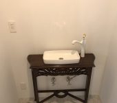 東大阪のお客様宅にてテーブルを加工して洗面台を作成致しました。普段あまりないご依頼ですが、アンティーク調のテーブルと水栓の組み合わせで、既製品にはないオリジナル仕様です。お客様のこだわりにより、当社ではこの様なアレンジも可能です。