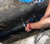 水道局の配水小管の布設工事を行いました。この度東大阪市でも水道本管をHPPE(水道配水用ポリエチレン管)に変更していく事が決定され、民間での施工業者1号となりました。PEに関しては耐久性があり将来的にとても良い素材ですが、電気融着が必要です。そのため施工する可能性のある者は全て講習を受けております。動画は接着面を削る専用の機械で作業中の様子で、ベトナムからの教育実習生ニャットさんが施工しております。ニャットさん含むベトナム人実習生3人も、メーカー担当者の研修を受け、HPPE施工の資格証をもっています。