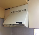 かなり使い込まれた古い型のキッチンを新しくするとのことで、リフォームのご依頼をいただきました。床や壁、天井も油汚れなどでかなり黒ずんでいましたが、全面張り替えを行いとてもきれいに生まれ変わりました。淡い色合いで統一されすっきりシンプルな形状ですが、レンジフードはお手入れが簡単な浅型になり、コンロが2口→3口に変わっているため使い勝手も良くなりました。