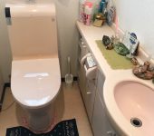 古くなった便器の取替のご依頼をいただきました。今までお使いのものはピンク色でしたが、今回ホワイトに決めていただき雰囲気も変わりました。リモコンも従来の幅広のものからスタイリッシュなスティックタイプになり、レトロな雰囲気の壁紙にもマッチしていておしゃれです。さらに居心地のよい空間になったのではないでしょうか?古くなったトイレの取替は頻繁にご注文をいただいております。ご要望をおっしゃっていただければ色々なタイプ、デザインのトイレをご提案させて頂きます。トイレが古くなって使いづらい、においが気になる、最新のタイプについて機能を知りたいなどございましたらお気軽にお問い合わせください。