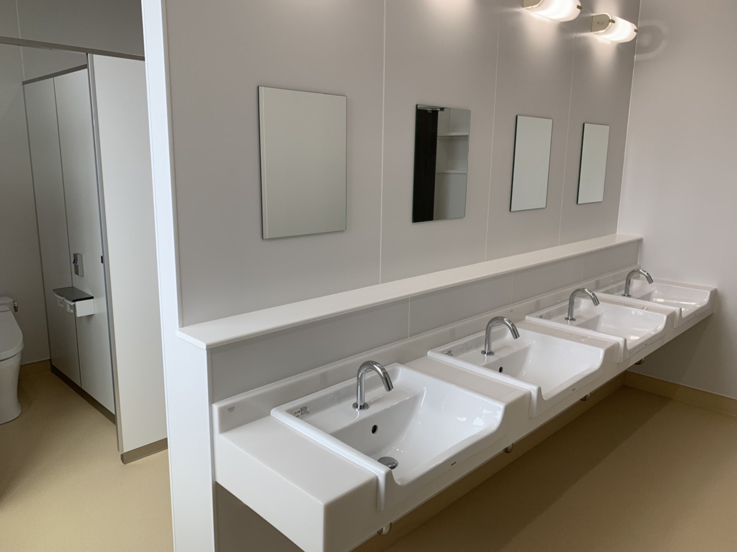 過去に建築屋さんからご依頼いただき給排水関係を施工させて頂いた物件ですが、大阪市内の保育所様が完成した時の写真です。清掃も終わってお引き渡し前の状態で撮影させていただきました。トイレには小さな便器が並び、ドアも小さくてパステルカラーが可愛いです。今回の保育所様はビルの1F~3Fまでとなっていて少し大きな規模だったようです。今は既にオープンされているため、子供たちでにぎやかな様子が想像できますね♪