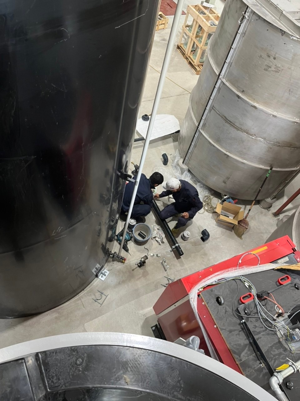 こちらの工場様は、水道水から不純物を取り除き尿素水を製造する工場です。尿素水というのは初めて聞きましたが、ディーゼルエンジンの排ガス中の窒素酸化物を浄化するもののようです。こちらの建物にはもともと25mmの水道が引き込んでありましたが、今回は南側の府道に通っている水道管から新たに分岐し50mmを引き込みました。水道水を一旦タンクに入れ、様々な装置を通って製品となります。浄化装置の配管も弊社職人が担当しておりますが、なんだか難しそうです(笑)大小様々な会社、工場様からの給排水のご相談お受けいたします。何かご検討、お悩みの際はお問合せください!